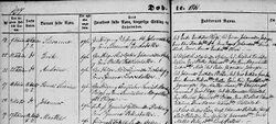 Utsnitt fra kirkeboka for Hafslo i 1860. Johannes Gjetmundsen ble født og hjemmedøpt den 4. mars.