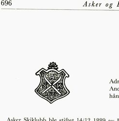 Asker Skiklubbs logo Foto: Ranheim: Norske skiløpere, 1956/Nasjonalbiblioteket Asker Skiklubb, stiftet 14. desember 1889, er Norges største idrettslag med omlag 5000 medlemmer (2010). Daglig leder er Svein Granerud.
