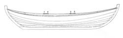På geitbåtar går esingen tradisjonelt langs alle rorsromma, men ikkje i skottane. Merk at esingen følgjer ripa heller enn bordovergangen framme, og at 'keipskjegga går ned til esingen. Foto: Olve Utne (2011)