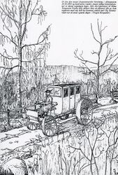 Norges første bil så dagens lys på Vestby i Strømmen. Konstruktøren var Hans Torgersen. Her har tegneren Trygve Krogsæter gjenskapt kjøreturen fra Strømmen til Kristiania slik den var omtalt i Aftenposten 24. oktober 1895.
