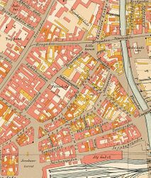 Brugata 22 sett fra Lilletorget, Vaterland, omkring 1890-1900.