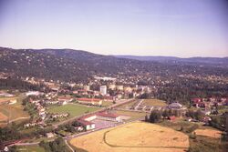 Flyfoto, Frognerseteren og Tryvannshøgda, 1995. Foto: Fjellanger Widerøe/Oslo byarkiv
