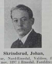 Johan Skrindsrud - faksimile frå Norske skolefolk (1952).