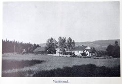 På Mattisrud bodde i tiden omkring 1950 Ludvig Mathisrud (1895 - ) og hans søster Martha (1897 - 1982). Mattisrud hadde i følge Norske Gardsbruk fra 1957 80 dekar dyrket jord, 20 dekar annet jordbruksareal og 300 dekar produktiv skog. Her hadde de da 2 hester og 30 høner. Det var mange hus på garden. Det fine, store våningshuset var bygd cirka 1850. Det var den første selveieren på Mattisrud, Hågen Paulsen (også skrevet Haaken), f. 1814 og gift med Henrikke Olsdatter, f. 1819, som satte opp våningshuset. Les mer …
