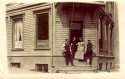 Postkort med Gamle Blomhaug skole i Hunndalen, der Hole var lærar. Familien budde òg på skulen. På biletet kan vi dessutan sjå litt av hagen han var så glad i.