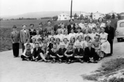 Elever og lærere ved Vestby skole i 1957. Foto: Ukjent (Akershusbasen)
