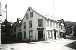 Sjøgata 14 slik generasjoner av Tromsøfolk var vant til å se huset. 1960-tallet. Foto: Ukjent. I Sjøgata 14 i Tromsø drev samme familie butikk i nesten to hundre år. Johan Peter Hansen ( 1793- 1871) startet forretning i Sjøgata 37 i 1823, på 1830-tallet(?) bygde han våningshus her. Hansen var en driftig kjøpmann som tok sjanser; i 1830 sendte han alene to ladninger med tørrfisk til Trieste.