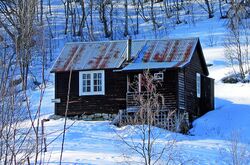 Hytta i Lii 20.3.2006. Foto: Aanund Olsnes
