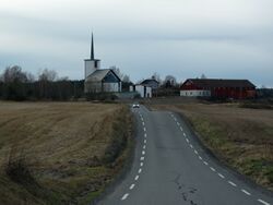 Skjeberg kirke og del av kirkegården i Sarpsborg sett fra nord Foto: Siri Johannessen (2008)