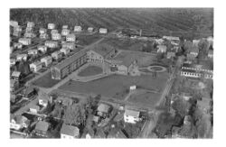 Redaksjonen og trykkeriet til avisa Akershus holdt til i huset nærmest til venstre. (1920)