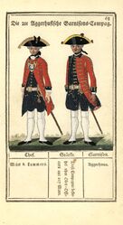 Illustrasjon fra boken "Vorstellung der sämtlichen Königl. Dänischen Armee" av Carl Bertram (1763).