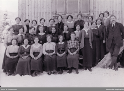 Elevar på jentekurset ved den flyttbare fjellandbruksskulen hausten 1916. Foto: Knut Tomassen Sorteberg/Hemsedal bygdearkiv (1916)