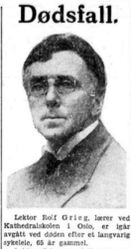 I en nekrolog i Aftenposten 20. september 1934 (usignert), ble Rolf Grieg beskrevet slik (utdrag):