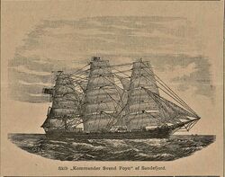 «Kommandør Svend Foyn» ble Norges største skip da hun i april 1883 ble kjøpt inn fra Nova Scotia, Canada av selskapet Union i Sandefjord for £ 6500.===== Et Skib, der billedligt talt kunde siges at være kommen paa Vandet før sin Tid. =====