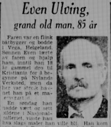 Faksimile fra Aftenposten 14. august 1948. Utsnitt av omtale av Ulving ved hans 85-årsdag.