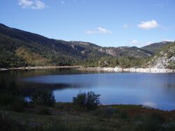 Ved det nedtappede Sundsbarmvatnet er det ikke mange spor etter tidligere storstilt gruvedrift. Foto: Siri Iversen (2010) Gullnes var fra 1524 til 1888 et kobberverk ved Sundsbarmvatnet i Seljord kommune (ca 12 km fra Langlim) som var Norges første organiserte bergverk - 100 år før Kongsberg Sølvverk. Det ble også funnet sølv på verket.