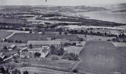 Steffan Gjørvad og familien ved Fredheim skole 2. juni 1936. Foto: Digitalt Museum/Akershusbasen