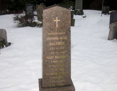 Fredrik Glad Balchen er gravlagt på Vestre Aker kirkegård i Oslo. Tittelen Institutbestyrer er benyttet på gravminnet.