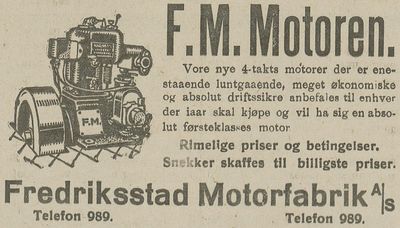 Fredriksstad Motorfabrikk (FM) ble etablert på Kråkerøy i Fredrikstad av Chr. Halvorsen i 1910, og het da Fredriksstad Motorverksted. Da motorproduksjonen opphørte i 1985 hadde bedriften produsert 22 300 båtmotorer (hovedsakelig bensindrevne), men enkelte typer ble bygget frem til 1998. Etter dette gikk FM i hovedsak over til en rolle som underleverandør for Østfold-industrien.