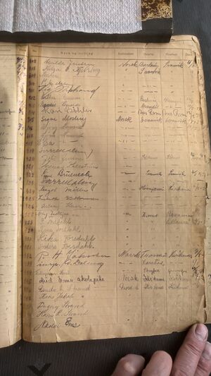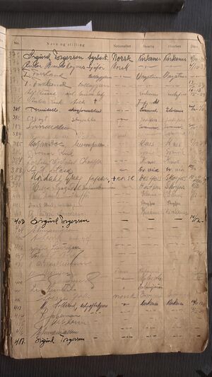 Noen sider mangler i den eldste fremmedboka som ble påbegynt i 1936. Fra år 1939 ser boka hel ut.