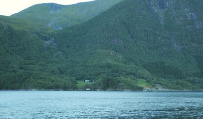 Fuglsnesdalen med Fuglsnesvatnet (325 moh.) og lia opp mot fjellet Storøra (908 moh.) attom.
