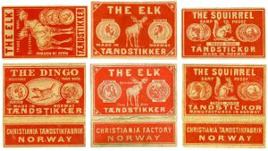 Fyrstikkesker og etiketter fra Christiania Tændstikfabrik