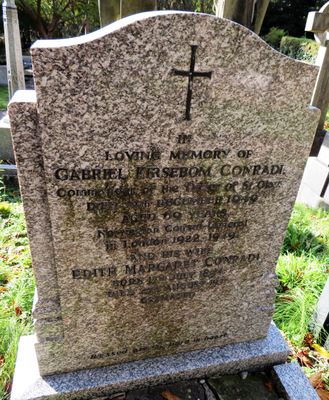Conradi er gravlagt på den østre delen av Highgate Cemetery i London. Hans kones urne ble satt ned samme sted i 1971. Dattera Helen Margaret Brereton (1932–2002) er gravlagt sammen med dem, med eget gravminne.