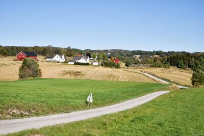 Galsrødveien med Klavenes-gårder sett østover.