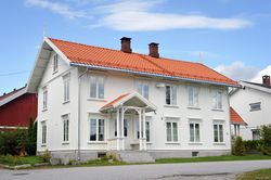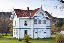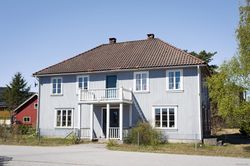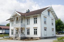 | 21 | Gnr. 77/8, «Vonheim». Hus i sveitserstil sett opp i 1885 av Wilhelmine Holmboe. Distriktslege Jens C. Holmboe overtok i 1894. Her var legekontor fram til 1934, sidan bustad. | |