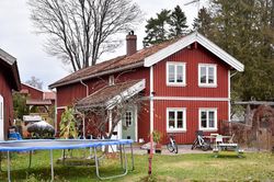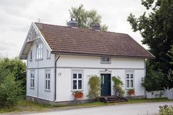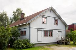 | 23 | Gnr. 78/36, «Gvarvmoen», «Gjestheim». Sett opp i 1896 i sveitserstil. Fyrste høgda var ei 300 år gamal tingstove henta frå Nedre Holtan. Her blei det opphaveleg drive privat middelskule. Det var sidan meieri og butikk, men frå 1926 var det hotelldrift her til ut i 1970-åra. Fram til etter krigen var dei delvis sjølvforsynte her, med to kuer og dyrka mark ned mot elva. Huset var sentralt i kunstnarmiljøet kring Erik Werenskiold frå tida hans på Gvarv. | |