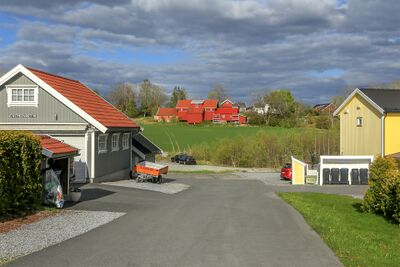 Parti fra Gaupefaret med gården Eikeberg i bakgrunnen.
