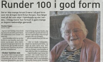 - NRK Buskerud: «Gerd (100) måtte trøste ordføreren» (publisert 27. mars 2015).