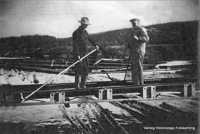 Lensekræbbene Henrik Bøhaugen (t.v.) og Petter Hassel ved Glennetangen lense. Begge var blant dem som drev gårdsbruk, men som hadde arbeidet i lensa som nødvendig tilleggsinntekt.