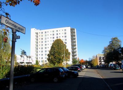 Glimmerveien på Lambertseter i bydel Nordstrand i Oslo går fra Langbølgen til Feltspatveien.