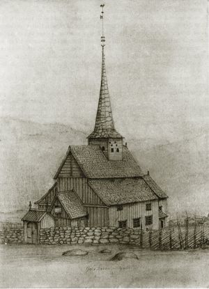 Mange trekk ved kyrkja liknar Hegge stavkyrkje i Valdres; truleg har same byggmeister leidd bygginga av begge kyrkjene. Ho stod truleg i den opprinnelege utforminga si heilt til 1600-talet, med svalgang kring skip og kor. Takryttaren vart fornya i 1694. Samtidig vart det lagt inn ei himling over skipet, og i same periode vart det òg sett inn to vindauge på sørveggen i midtrommet i skipet. Kring 1730 vart det bygd eit galleri på nordsida av skipet. Noko seinare vart kor og apsis rivne, og eit nytt lafta kor vart oppsett. Men dei gamle materialane vart oppattbruka til himling i det nye koret, og slik overlevde veggmåleria slik at dei kunne restaurerast i samband med flyttinga.