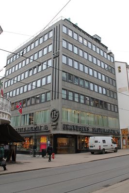 I mars 1950 gikk Grensen 12 opp i flammer. Gjenoppbyggingen gikk raskt, og allerede sommeren 1950 var byggingen av forretningsgård satt igang under arkitekt . To uker før jul i 1951 ble butikken gjenåpna. Her ligger forretninga fremdeles i 2019.