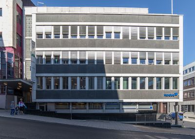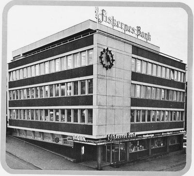 Fiskernes bank (etabl. 1950), bygde ny forretningsgård i Grønnegata 78/80, ferdigstilt i 1964, (1982).