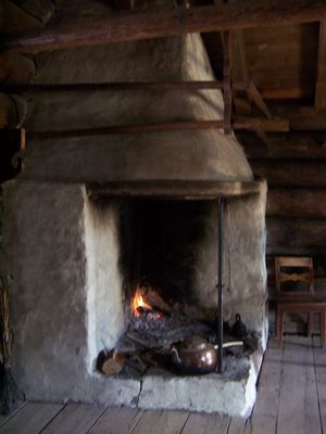 Interiøret omfattar nokre element som har komi frå Flesberg stavkyrkje, nemlig høgsetetavla, panela på senga, og to identiske dører. Den eine av dørene leder frå stua inn til kova, mens den andre opphavlig leda ut i forstua - denne er no tatt ut og erstatta av ei gitterdør med tanke på formidlinga. Høgsetetavla ber inskripsjonen: «Herren er ner hos ale dem som kale paa ham. Den 14 september Anno 1633.» Seinare riksantikvar Roar Hauglid meinte det trulig var ovannemnte Sjurd Hellekson Grøsli som fekk skaffa ho i 1735, da kyrkja vart ombygd. Under eit lag med rosemåling som mest sannsynlig er frå 1780-åra er tavla umåla, og sidan kyrkja vart måla innvendig i 1737, er det sannsynlig at Sjurd fekk tavla med seg før den tid.[10]