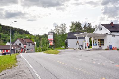 Gransheradvegen i Gransherad sentrum sett vestover.