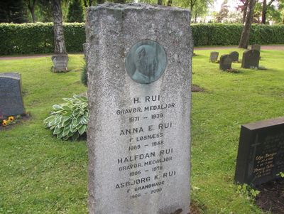 Hellik og Halfdan Rui er gravlagt sammen på Nordre gravlund i Oslo.