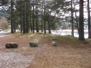 På biletet av gravhaugen ved kyrkjebakken ser vi dei fire neste gravhaugane ved vannkanten til høgre. I bakgrunnen er Munkehola.