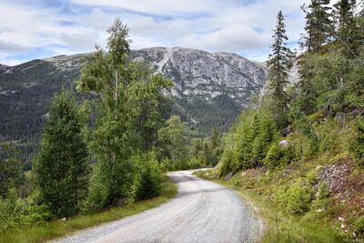 Vegen Grimås sett nordover med utsyn til det 1398 meter høge Steinfjellet.
