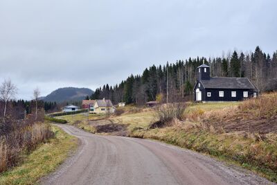 Grorudveien med Hogstad-gårder sett nordover fra starten i Opdalen.