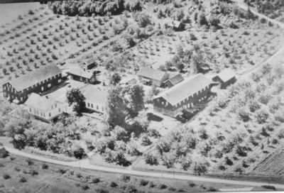 | Gunhildrud fotografert fra båt ute på Eikeren. Vi ser klyngetunet, som omfatter husene på både bnr. 1 og bnr. 2. Rett ovenfor gården ser vi fjelltoppen Gunhildrudknatten. | |
