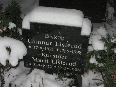 Gunnar Lislerud er gravlagt sammen med kona på Ullern kirkegård i Oslo. Tittelen Biskop er benyttet på gravminnet.