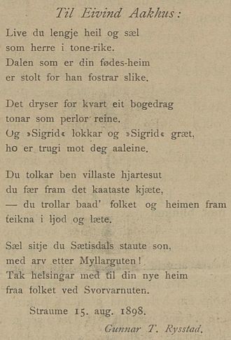 - Gunnar T. Rysstad hos Aasentunet (lagra versjon på archive.org).