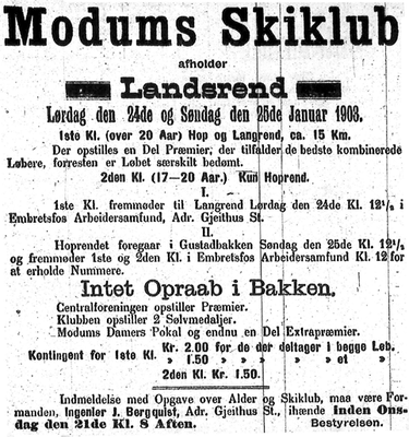 - Gamle Modum 1986, side 8. Hovedlandrennet i Gustadbakken i 1915. Artikkel av Thure Lund.
