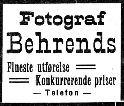 Annonse fra Behrends i Indtrøndelagen 17. januar 1913.