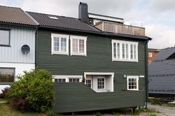 | 7 | Gnr. 3020/850. T. M. Nielsen & søns tobaksfabrik holdt til her fra 1921 til fabrikken ble kjøpt opp av J.L. Tiedemanns Tobaksfabrik i 1959. Bygningen, som er på 1080 m² ble modernisert i 1990, og i dag er det 15 seniorleiligheter her. | |