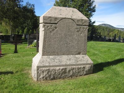 Om ferda til dette gravminnet over Atlanteren og vidare opp til Fyresdal veit vi og sers lite, heller ikkje når det vart satt på plass på kyrkjegarden. Det er rimeleg å tru at dette skjedde etter at kanalen frå Skien vart opna i 1892 slik at transporten til Bandaksli vart enklare. Det er ein sers tung koloss som er målt til å vege 1,5 tonn. Opp Bandakslikleivane måtte det vere tungt for hestar og folk. Men borna satsa nok alt på at den skulle kome på plass. Fotograf Olav Nylid tok eit fotografi ca. 1920 så det er mogleg på denne tida støtta kom til kyrkjegarden.